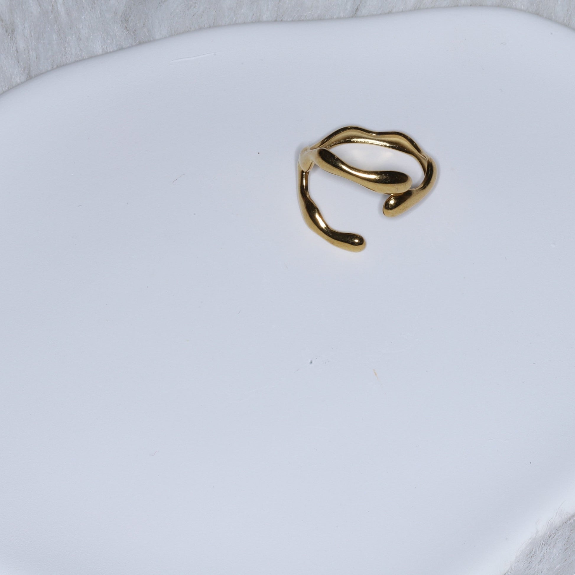 The Solis Ring is a sculptural gold-plated piece inspired by organic movement and modern minimalism. Designed with fluid, freeform curves and a polished finish, it offers a lightweight, comfortable fit thanks to its open, adjustable band. Its contemporary silhouette makes it perfect for layering or wearing solo, adding a touch of effortless elegance to any look. Ideal for everyday wear or refined styling, this ring embodies the understated luxury of timeless design.